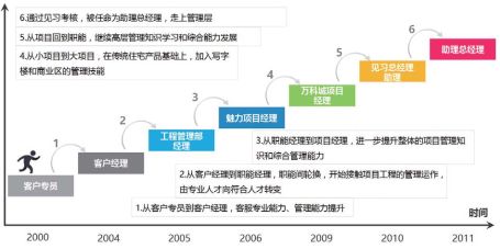 從魅力項(xiàng)目經(jīng)理轉(zhuǎn)崗為萬(wàn)科城項(xiàng)目經(jīng)理可視為第三次輪崗,通過(guò)從管理小項(xiàng)目到管理大項(xiàng)目的轉(zhuǎn)變,使其接受更大的挑戰(zhàn)。
