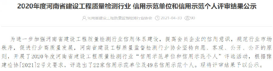 喜訊!我司陳麗、李俊濤、高鵬榮獲2020年河南省建設工程質(zhì)量檢測行業(yè)信用示范個人