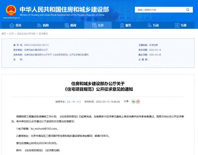 這份曾引發(fā)大眾關(guān)注的《住宅項(xiàng)目規(guī)范》已是第三次向社會公開征求意見。按照時間安排,此次意見反饋截止時間為2022年3月28日。