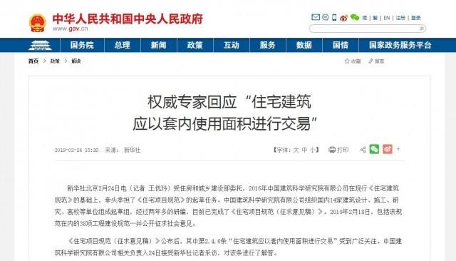 2019年的2月24日,新華社發(fā)布《權(quán)威專家回應(yīng)“住宅建筑應(yīng)以套內(nèi)使用面積進(jìn)行交易”》的文章,文中援引中國建筑科學(xué)研究院有限公司相關(guān)負(fù)責(zé)人的解釋稱:“住宅建筑應(yīng)以套內(nèi)使用面積進(jìn)行交易”這一條款的提出,在規(guī)范起草過程中,對國際國內(nèi)住宅面積計算做法進(jìn)行調(diào)研,按套內(nèi)使用面積計算是國際通行做法,而我國住宅面積計算方式主要采用建筑面積或套內(nèi)建筑面積。